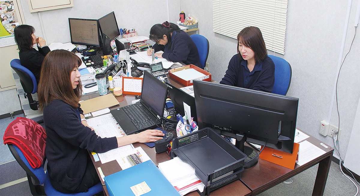 2年前に「家庭との両立ができると思って入社した」という須藤優子さんはライフスタイルに合わせて働ける点に魅力を感じ、業界未経験ながら入社した。森亜希子さんも3人の子育て中。「以前の会社は休みづらい雰囲気があり、ストレスを感じていた」という。昨年秋に入社し、横澤さん、須藤さんとともに総務部で女性の視点から働きやすい職場づくりを目指す。