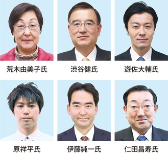 本紙の調べでは、現職は前回の得票数順に自民党の遊佐大輔氏(37、2期)、自民党の渋谷健氏(60、3期)、共産党の荒木由美子氏(59、5期)、公明党の仁田昌寿氏(62、6期)、立憲民主党の伊藤純一氏(46、1期)の5人全員が立候補の準備を進める。ほかに、無所属の新人で会社員の原祥平氏(32)が名乗りを上げ、6人で争われる見込み。