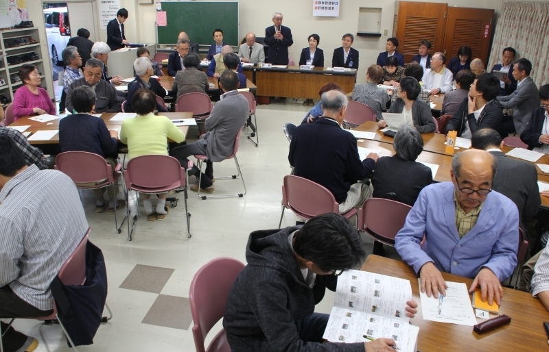 【地区懇談会始まる】 16連合町内会ごとに行政職員を交え、地域の課題を話し合う「地区懇談会」が5月8日の井土ヶ谷地区から始まりました。会場は井土ヶ谷共同ビルの集会所です。井土ヶ谷地区は次の2つを議題としています。(1)各自治会・町内会の防災活動(2)振り込め詐欺防止を中心とした防犯対策
