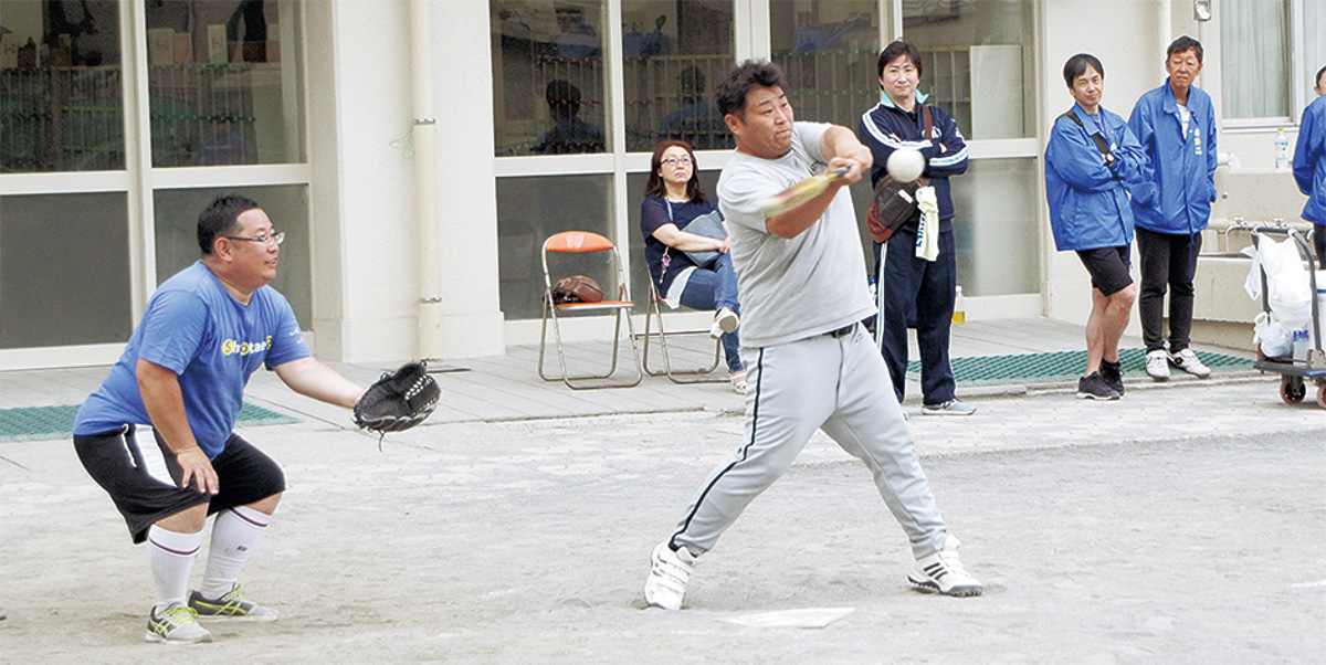 町内会ごとの10チームが参加し、トーナメント戦が行われた。30代の若い参加者や女性も多く見られた。