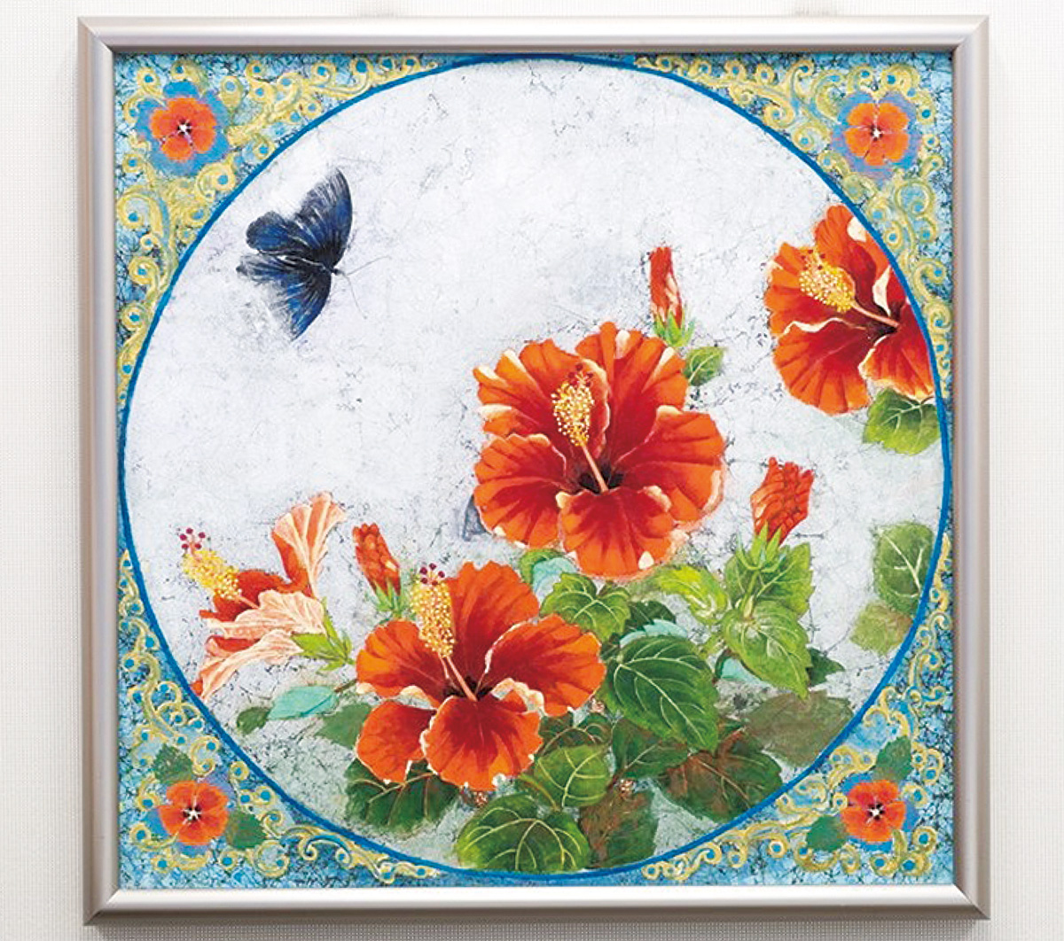 趣味の日本画は「ハマ展」で何度も入選するほどの腕前。今回のコンクールを知り、買ってきたハイビスカスを描いた。そこに「ちょうどそこに飛んできた」という1匹のカラスアゲハを加えた。作品は「S20号」と呼ばれる約72cm四方の大きさで、題名は「なお 生きる」とした。実は最初の発症時、森さんの母親は医師から「生きられるのはあと3年くらいかも」と伝えられていた。母親は森さんを気遣い、そのことを何十年も伏せていた。母親は5年前に他界。「自分が両親より早く逝くことなく、見送ることができた。その先の人生を生きていくという思いを絵に込めた」と森さんはいう。審査員からは「鮮やかなハイビスカスから作者の強いメッセージを感じる」と評価された。