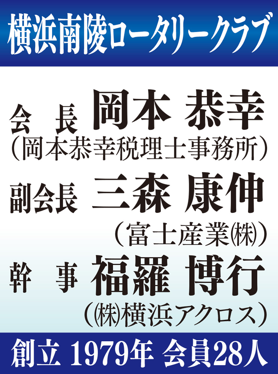 障害児者と小中学生がみなみん(南公会堂)で演奏や踊りを披露する「みなみわっしょいフェスティバル」を主催。参加団体も増え「にぎやかになってきた」と話す。「協調と融和の精神を大切にしたい」とベテランらしい運営を目指す。(次回は横浜南央ロータリークラブ)