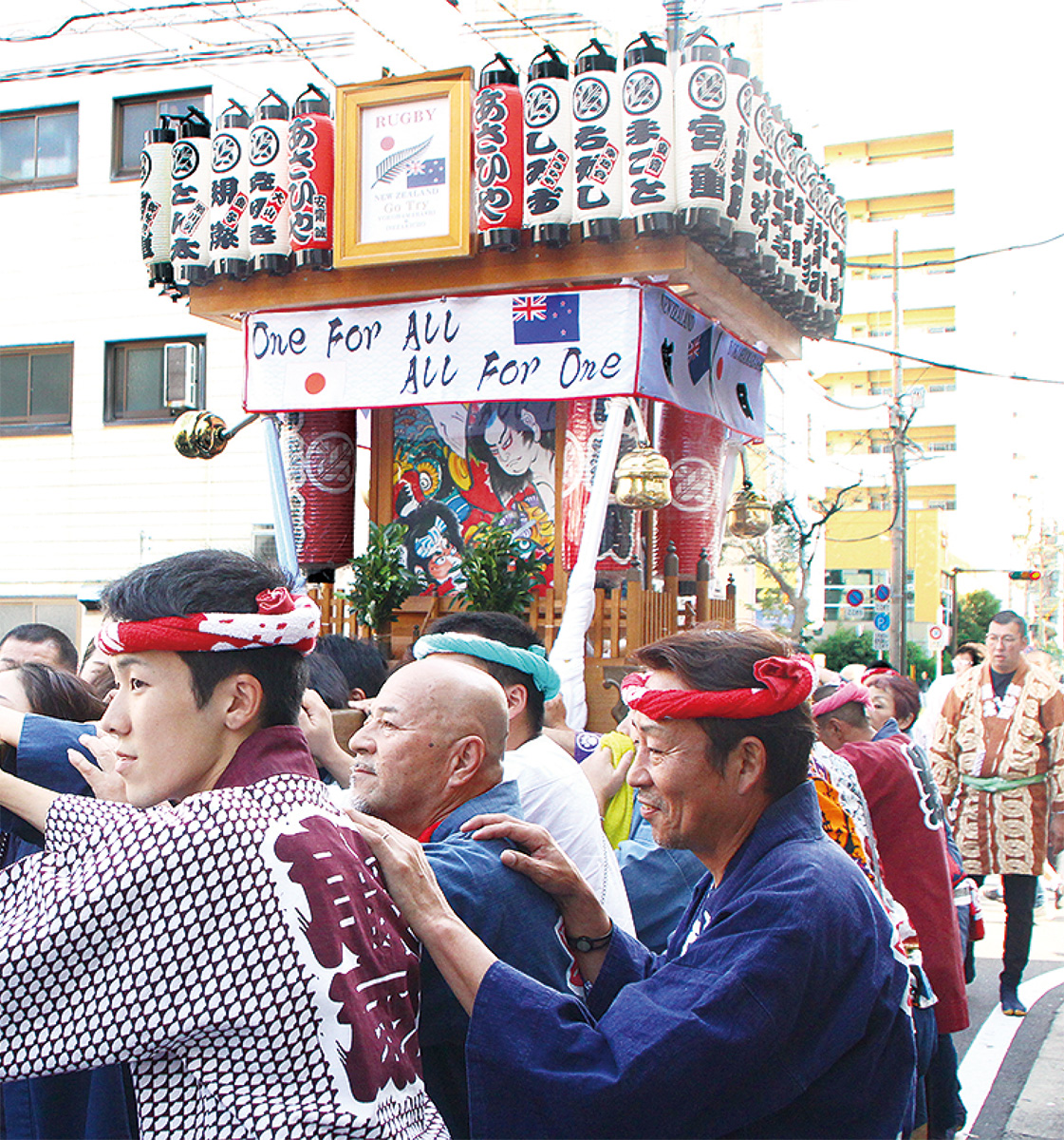 同商店街は市が進める外国人観光客対策の「一商店街一国運動」によって、ラグビーワールドカップに出場しているニュージーランドを応援することになった。試合観戦目的で来日する外国人に商店街を通して日本の伝統文化を知ってもらうため、神輿2基が商店街そばの大通り公園から、伊勢佐木町商店街を練り歩いた。神輿にはニュージーランド、日本の国旗にラグビーを象徴する言葉である「One For All All For One」と書かれた紙が取り付けられた。