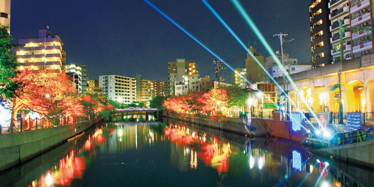 大岡川がレーザー光線でライトアップされるイベント「大岡川ひかりの川辺」が10月29日から11月3日まで、日ノ出町駅そばの長者橋から黄金橋エリアで行われた。