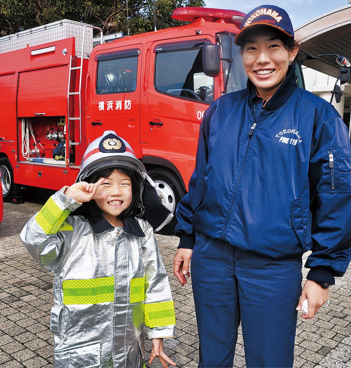 「家でできる火災対策はありますか」など、子どもたちからの質問にも答えた。そのほか、防火衣の着用や消防車の乗車体験なども行われ、消防士になった気分を味わった。