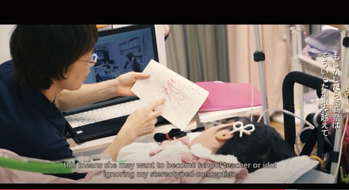 4月に完成した17作品目のドキュメンタリー動画に登場するのは、市立東俣野特別支援学校=戸塚区=に通う古川結莉奈さん。筋力が徐々に弱っていく難病「先天性ミオパチー」を患っている。