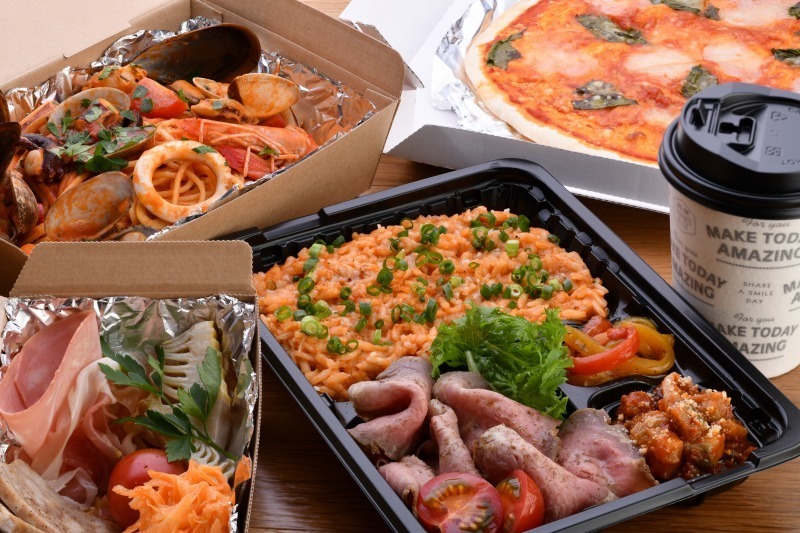 弘明寺商店街の中央の橋のそばにあります。40種類以上あるパスタ、10種類以上のピザ、豊富な前菜類のほとんどがテイクアウトに対応。弁当(今日のリゾット&おまかせ前菜3種)1,296円、パスタ(40種類以上)918円~(種類によって金額は異なる)、ピザ(10種類以上)972円~(種類によって金額は異なる)。