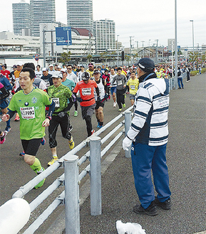 横浜マラソンは2015年からフルマラソンでの開催となりましたが、開催中止は台風の影響を受けた17年に続いて2度目です。(写真は2016年の開催時)