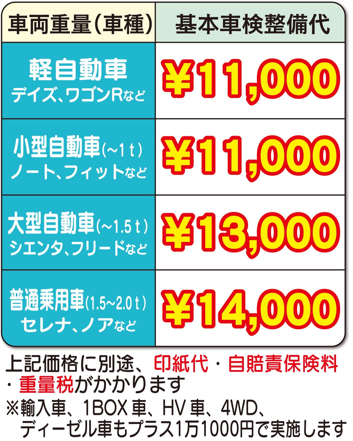 その理由はなんといっても車検整備代が1万1000円〜(重量による、詳細は左下表)という驚きの値段。「関東運輸局長認証工場」で、その設備やスタッフの技術力も任せて安心。車検が終了した日から6カ月以内、もしくは走行距離が1万Km以内の保証期間中であれば、万が一不具合が生じても無料で修理してくれる。「立ち合い車検見積り、完全予約制でお待たせしません。不要な部品交換などもしないのでご安心を」とスタッフ。さらに代車完備でサポート体制も万全だ。