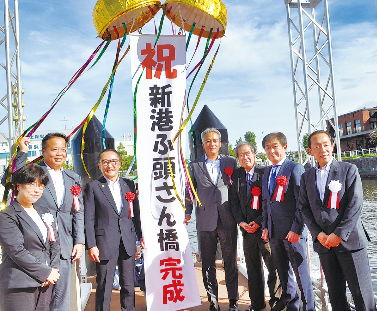 客船ターミナル、ホテル、商業エリアが一体となった日本初の停船塲としてオープンした中区の「新港ふ頭客船ターミナル」に、新たな水上交通の拠点となる「新港ふ頭さん橋」が9月11日に完成した。今後は観光船が不定期で発着する。