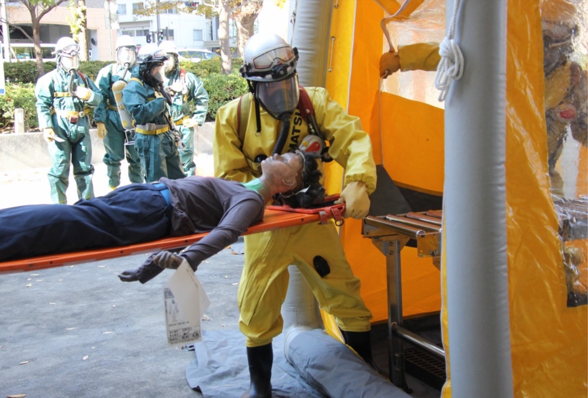 来年の東京五輪・パラリンピックを前に南消防署によるテロ災害を想定した対応訓練が11月11日、阪東橋公園で行われた。