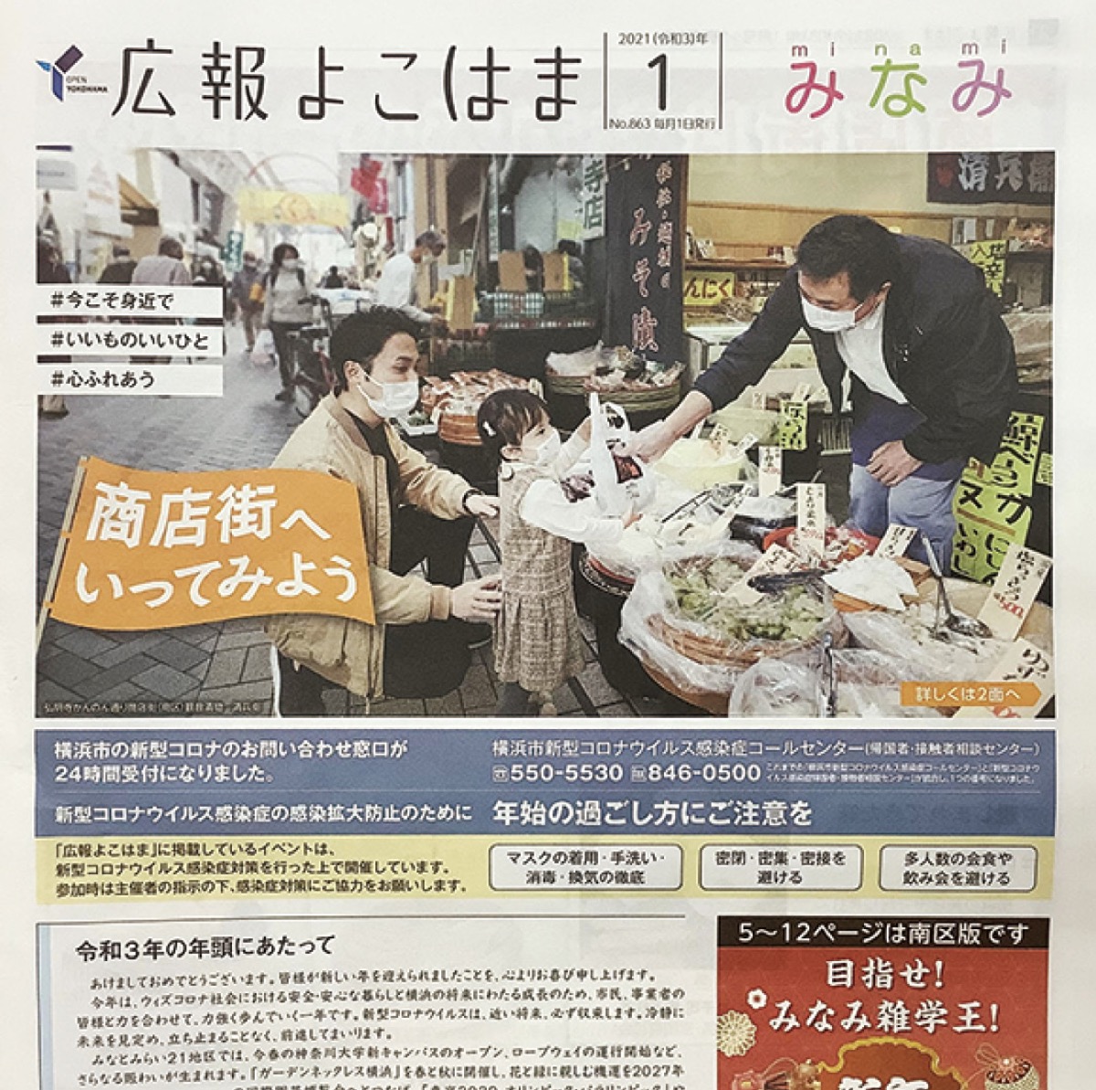 弘明寺商店街にある漬物店「清兵衛」の店舗写真が市内で配布される「広報よこはま」1月号の表紙を飾っている。