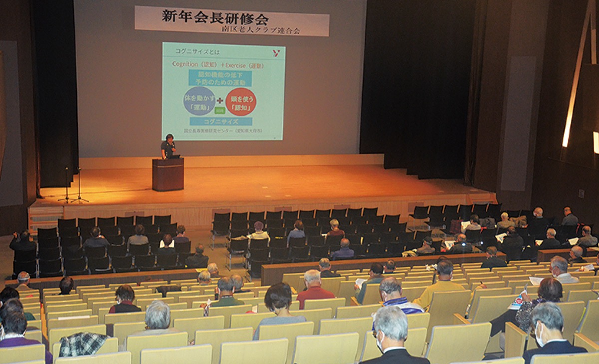南区老人クラブ連合会(伊東晃会長)は、会員の健康増進を目指す「新年会長研修会」をみなみん(南公会堂)で1月15日に行った。