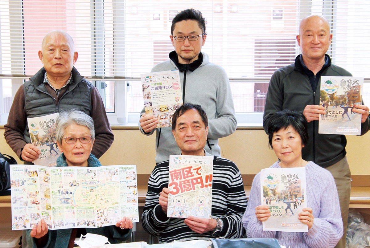 同地区は年1回発行で、以前は文章と写真が中心だった。編集委員の小川正治さんは「いろいろな広報紙やチラシが地域で配布される中、まずは目にしてもらわないと」と2018年発行の第23号から見た目を刷新。A4判6ページの中にカラフルなイラストを多く盛り込んだ。同号は中村地区に多くある「サロン」を紹介。マップを大きく入れて、場所を分かりやすくした。19年の第24号は区内で多発する振り込め詐欺による被害を減らそうと、表紙に「南区で3億円!!」と大きな赤文字を入れ、前年の南警察署管内の被害額を印象に残るように伝えた。詐欺防止策について警察署に取材をするなど、内容も工夫。20年の第25号は防災について考えてもらおうと、自宅や避難時の備えを紹介。表紙には災害情報の発信先となる区役所の電話番号を大きく載せた。