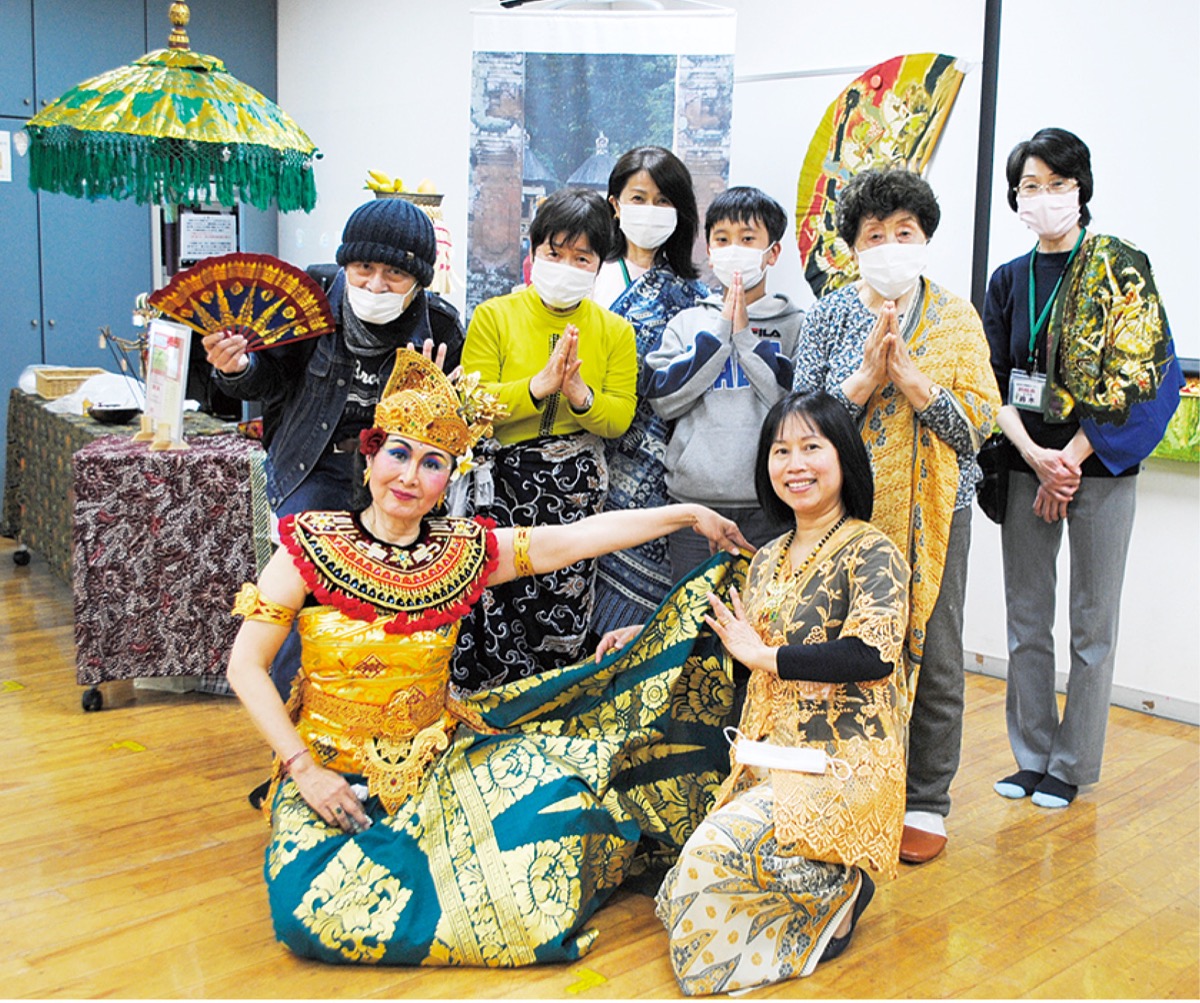 終盤は民族衣装の「ケバヤ」と「バティック」を紹介した。また、茅ヶ崎市在住でインドネシアに詳しい中井恵美子さん指導の下、ゆっくりとしたリズムが特徴のバリ舞踊を踊った。