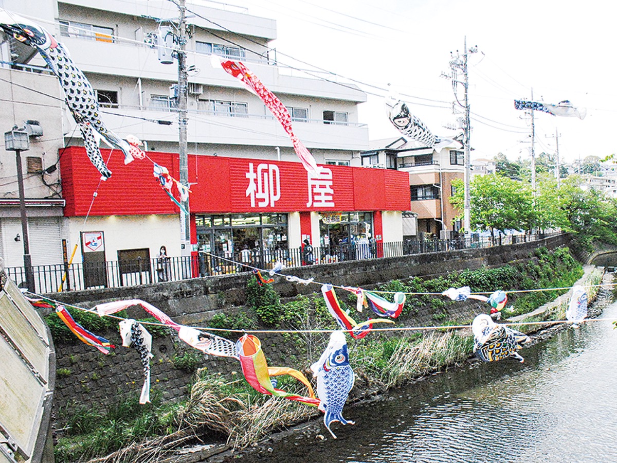 弘明寺商店街(長谷川史浩理事長)中央の「さくら橋」付近の大岡川で色鮮やかな鯉のぼりが悠々と泳いでいる。