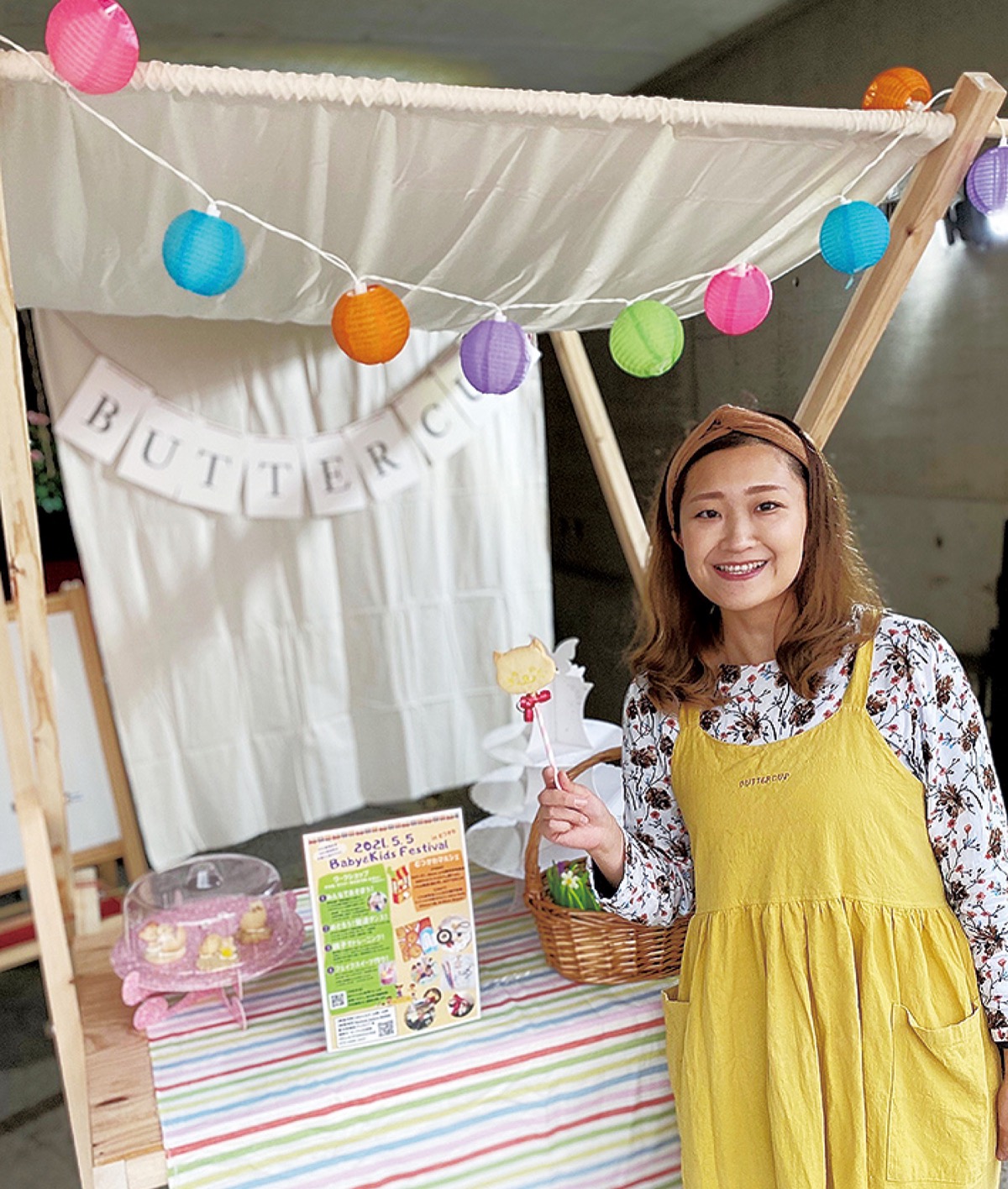 村上さんが経営し、動物の形をしたクッキーなどを提供する「バターカップ」や六ツ川の洋菓子店「フロランタン」のほか、ヘアアクセサリーなどの雑貨を販売する店などが並ぶ。フェイクスイーツ作り、0歳から2歳児が対象の発達ダンスといった親子で参加できるワークショップも多く用意した。