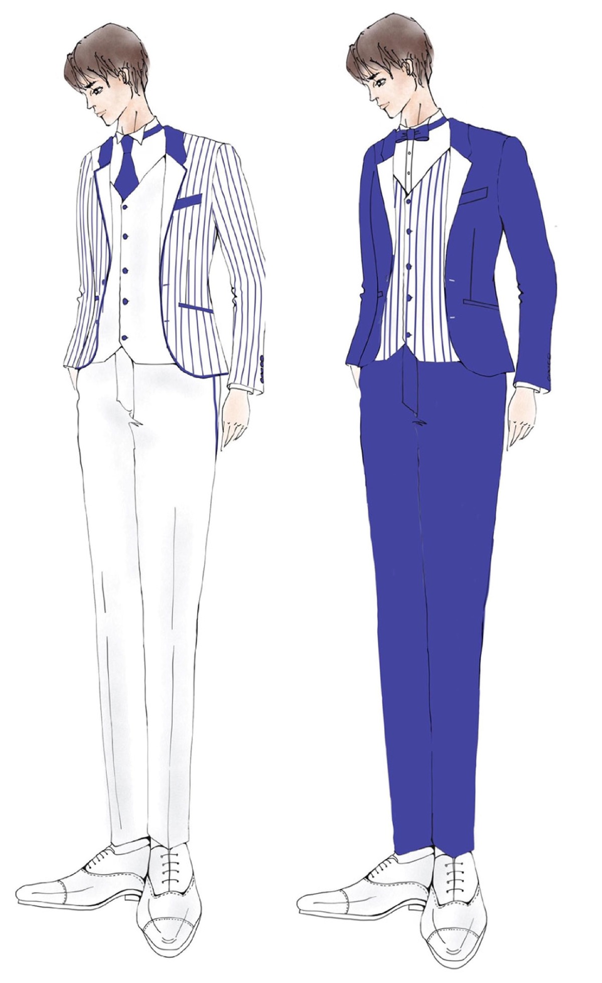 タキシードは2種類。ユニフォームデザインを生かし、ストライプが使われている。