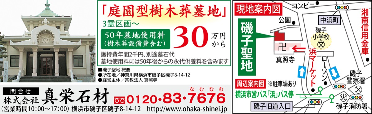 近隣では高台にある霊園が多い中、磯子聖地は階段もない平坦地にあるのが特徴の一つ。さらに路線バスのアクセスも良く、「ご高齢の方でも、気軽にお参りしやすいと好評です」と同霊園の担当者は話す。
