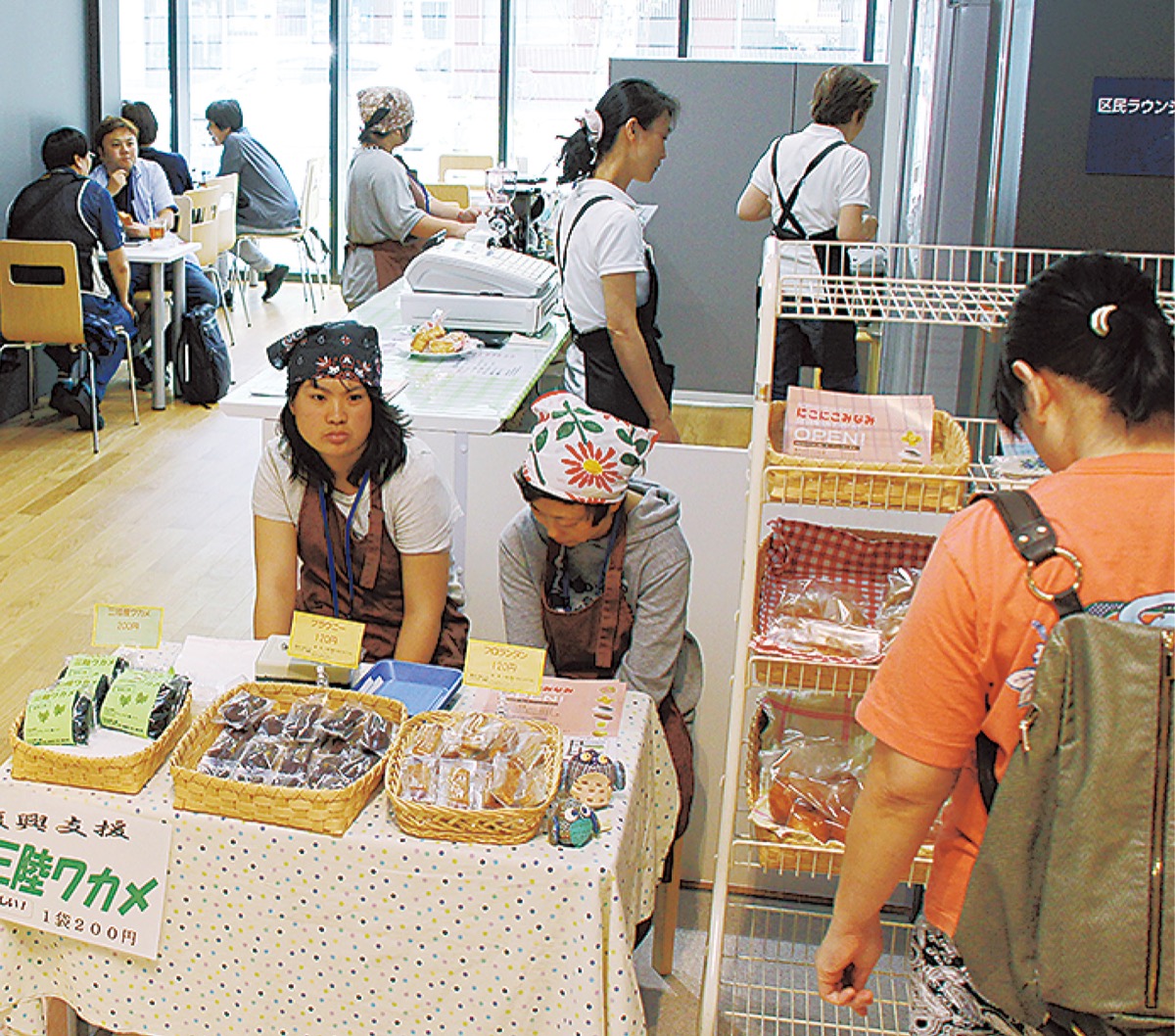 地域作業所が日替わりで販売するパンや焼菓子なども好評で、それを目当てに訪れる客もいたほどだった。同店の店長も務める畑中さんは「スタッフは自分が作ったものが売れるということに喜びを感じている。お客さんの声掛けも励みになる」と感じていた。