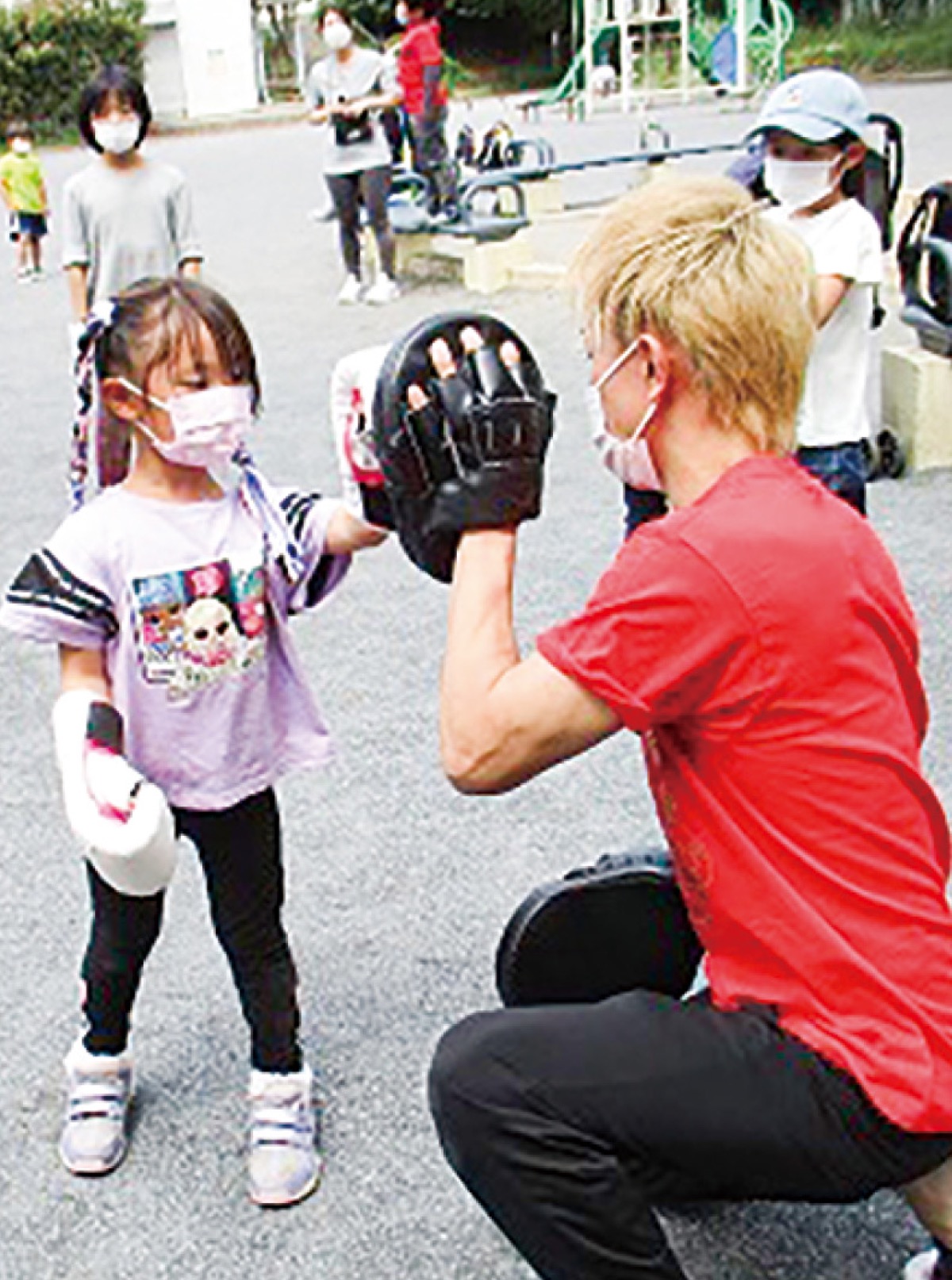 5月は、六ツ川のフィットネスジム「ピースフィットネス24」のオーナーでキックボクシングの元日本王者である矢島直弥さんを招き、会館そばの公園で簡単な体操やキックボクシングのパンチ体験などを行った。小学生を中心に約50人の子どもが参加し、小川さんによると、子どもからは「毎週でもやってほしい」との声があったという。矢島さんも以前から子どもへの指導を望んでいたという。