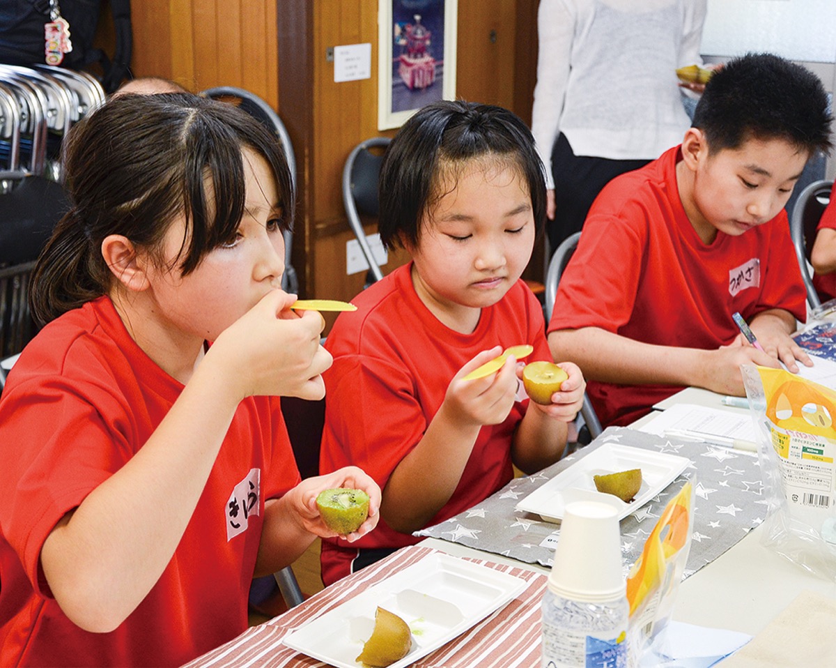 授業の後半は一人ひとりが感じたことを全員の前で発表し、キウイフルーツの生産が盛んなニュージーランドについて勉強した。大村監督は「五感は人によって違う。自分の意見を持つと同時に、相手の考えを受け入れる姿勢が大事」だと話し、道徳心を養う授業でもあると語った。