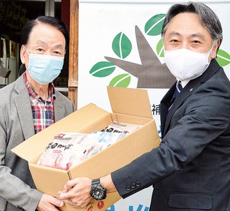 食料品は井土ヶ谷下町のパチンコ店「ドキわくランド井土ヶ谷店」が井土ヶ谷地区社会福祉協議会に定期的に寄付するもの。