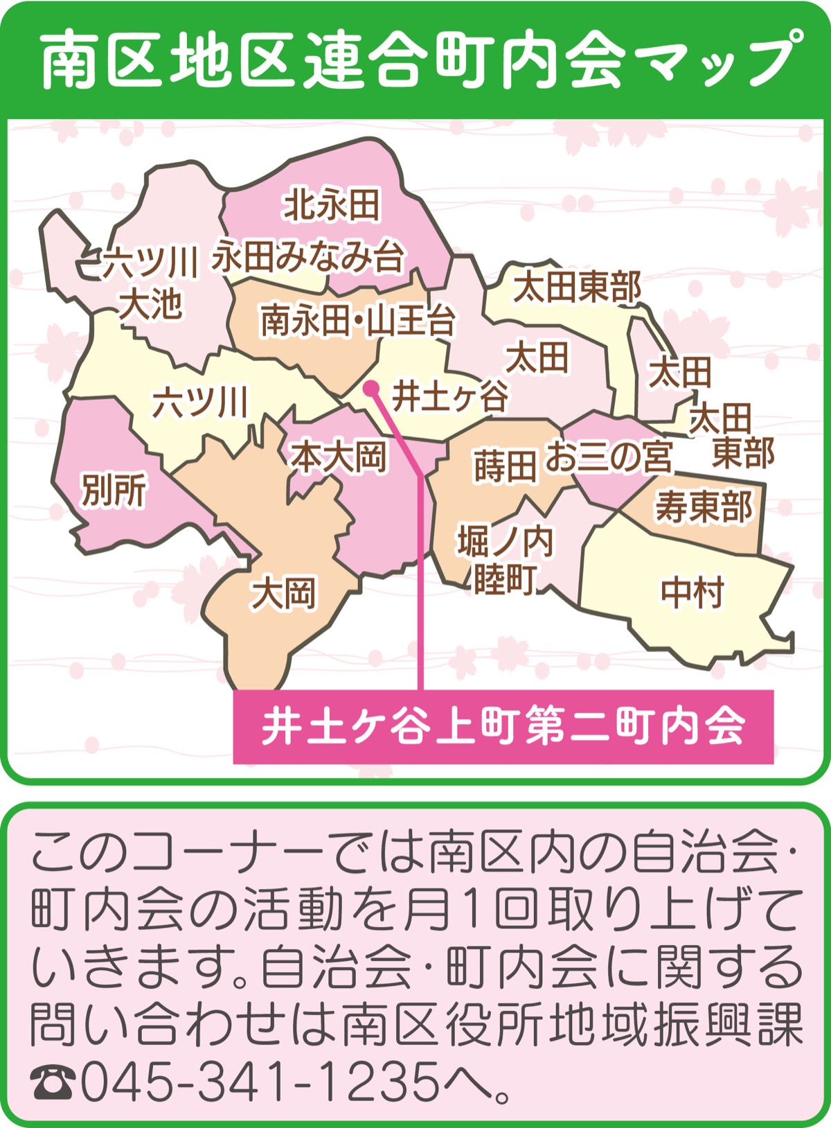 「あいさつとふれあいのまち」が町内会のスローガン。西條会長は「子どもと高齢者が気軽に交流できる行事を企画したい」と話し、新型コロナウイルスの感染状況を見て、10月のハロウィーンパーティーの準備を進めるとしている。