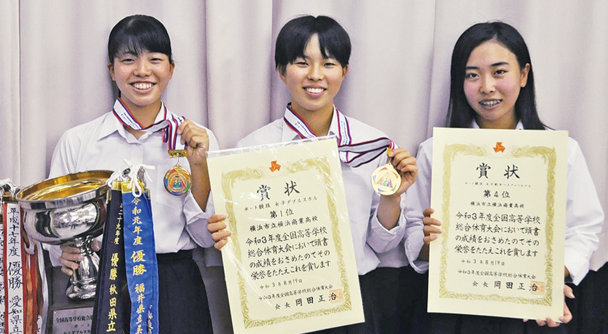 市立横浜商業高校(Y校)ボート部の選手が8月16日から19日まで福井県で行われた全国高校総体(インターハイ)に出場し、2人1組で出場する「女子ダブルスカル」で優勝した。同校ボート部の高校総体の優勝は男女通じて59年ぶりの快挙。1年生からペアを組む2人が支え合って頂点に立った。ほかの種目でも入賞者が出るなど、部全体で活躍を見せた。