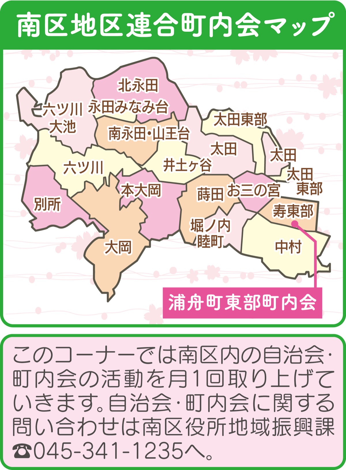 寿東部連合町内会の浦舟町東部町内会(関口武会長)は「清潔なまちづくり」がモットー。市が募集する身近な道路の清掃や美化活動などを行うボランティア団体「ハマロード・サポーター」に登録している。