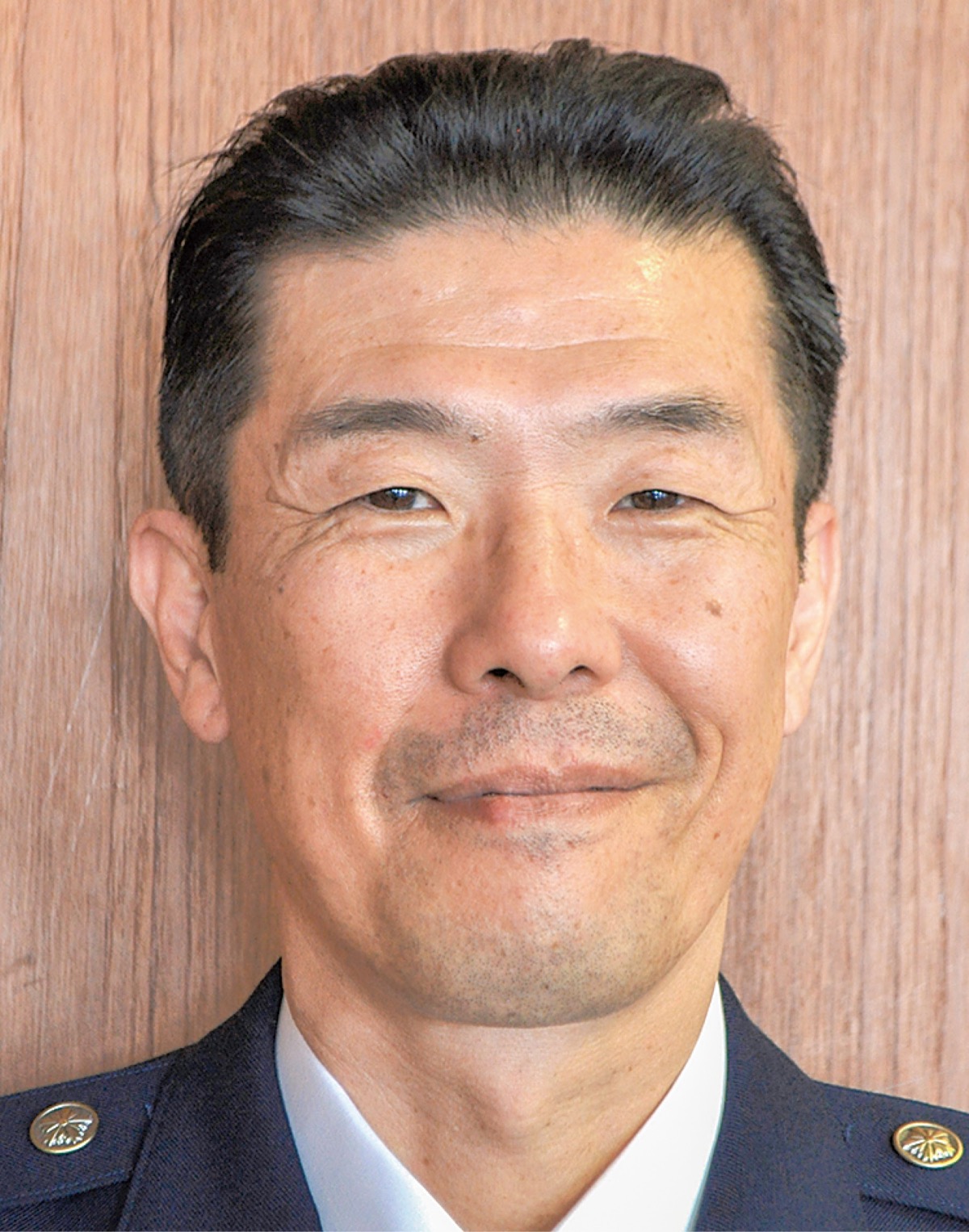 ○…うどんや餃子を生地から手作りするなど、家では料理上手な父親の一面も。最近は卵や肉の燻製作りに目覚め、レパートリーに富む。南署に来て1年半。「南区は活気のある個人店が多いのが魅力で買い物が楽しい」とにっこり。大好きなまちを守るべく、強い責任感で職務にあたる。