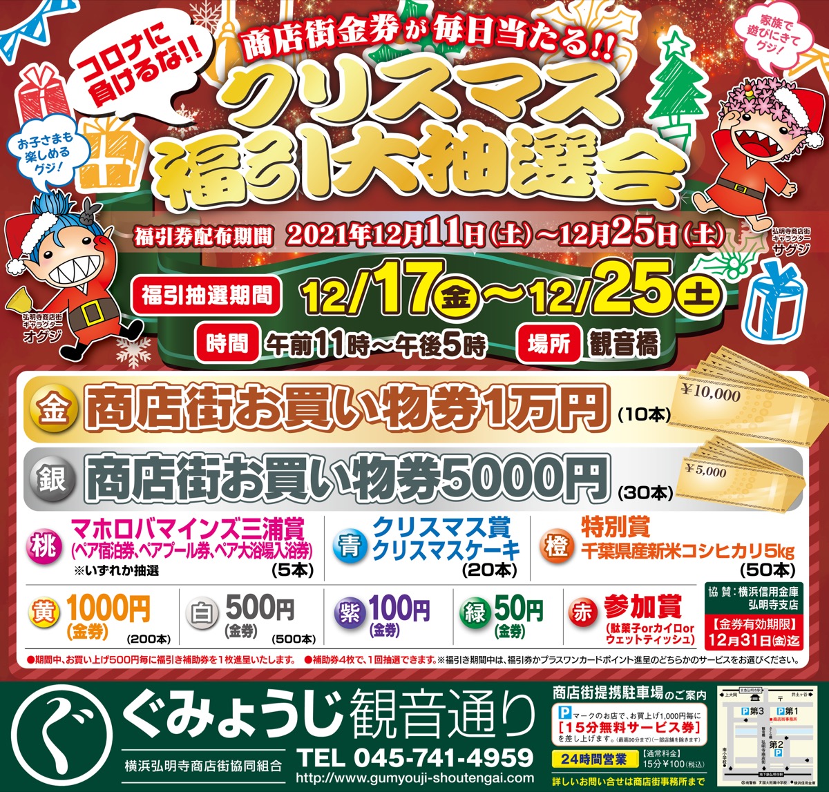 弘明寺商店街は「クリスマス福引大抽選会」を12月17日から25日まで実施する。福引券の配布は11日から始める。
