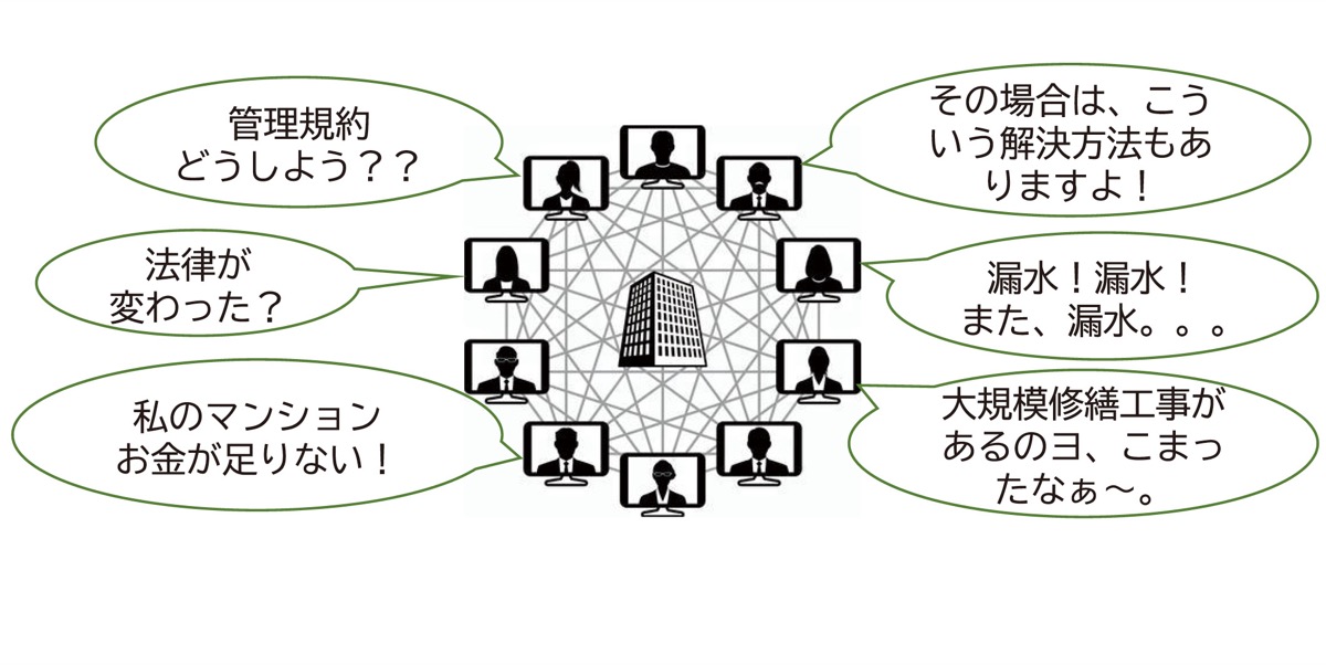 毎月、市内18区で管理組合の関係者を支援する交流会を実施しており、今回の区をまたいだリモート形式は初の試み。「よくあるマンション管理のトラブルを共有し、解決のヒントにしてもらえたら」と主催者。