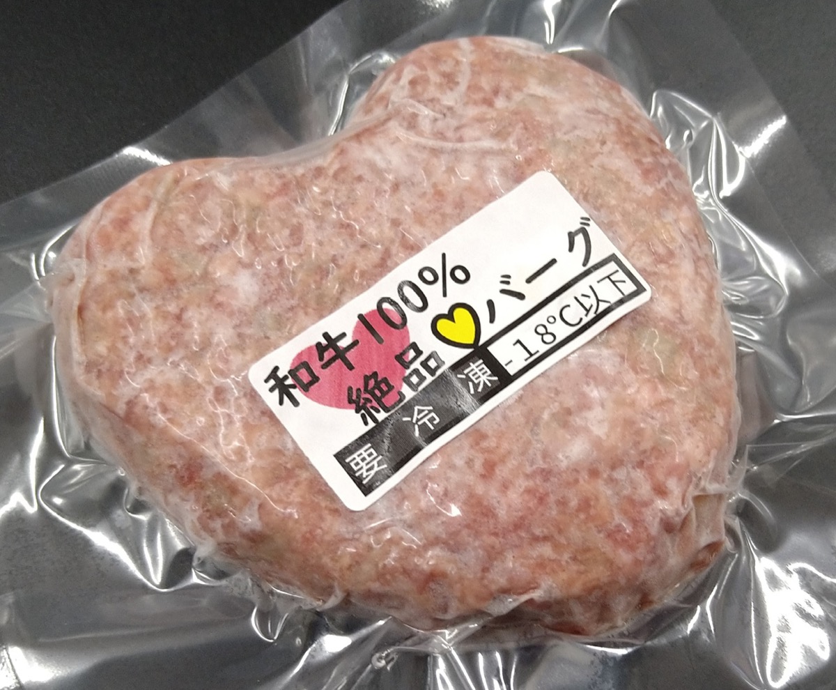 商品は黒毛和牛を使ったもので、冷凍状態で販売される。ハート型をしており、調理前に常温で解凍し、フライパンで焼くだけ。同店は「長引くコロナ禍で外食を気兼ねなく楽しむのを躊躇してしまう日が続く中、自宅での食事を少しでも楽しめる商品を提供できないかと考えた」という。