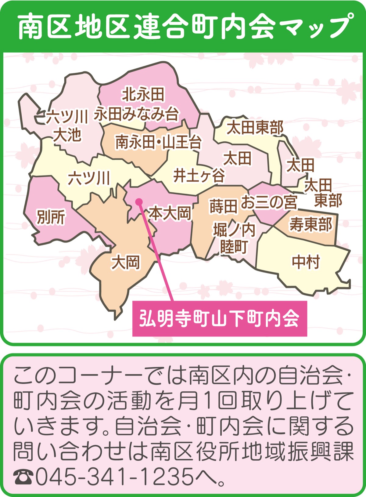 本大岡地区町内会連合会の弘明寺町山下町内会(根本守会長)は、まちと人をつなぎ、地域交流を支える役割を担う。