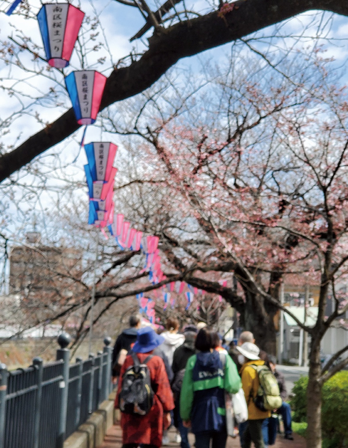 桜の保全活動を行う市民団体「南区さくらボランティアの会」と「大岡川FunClub」は3月20日に桜並木や自然観察などを目的にした「お花見ウォーキング」を開催し、65人が参加した。
