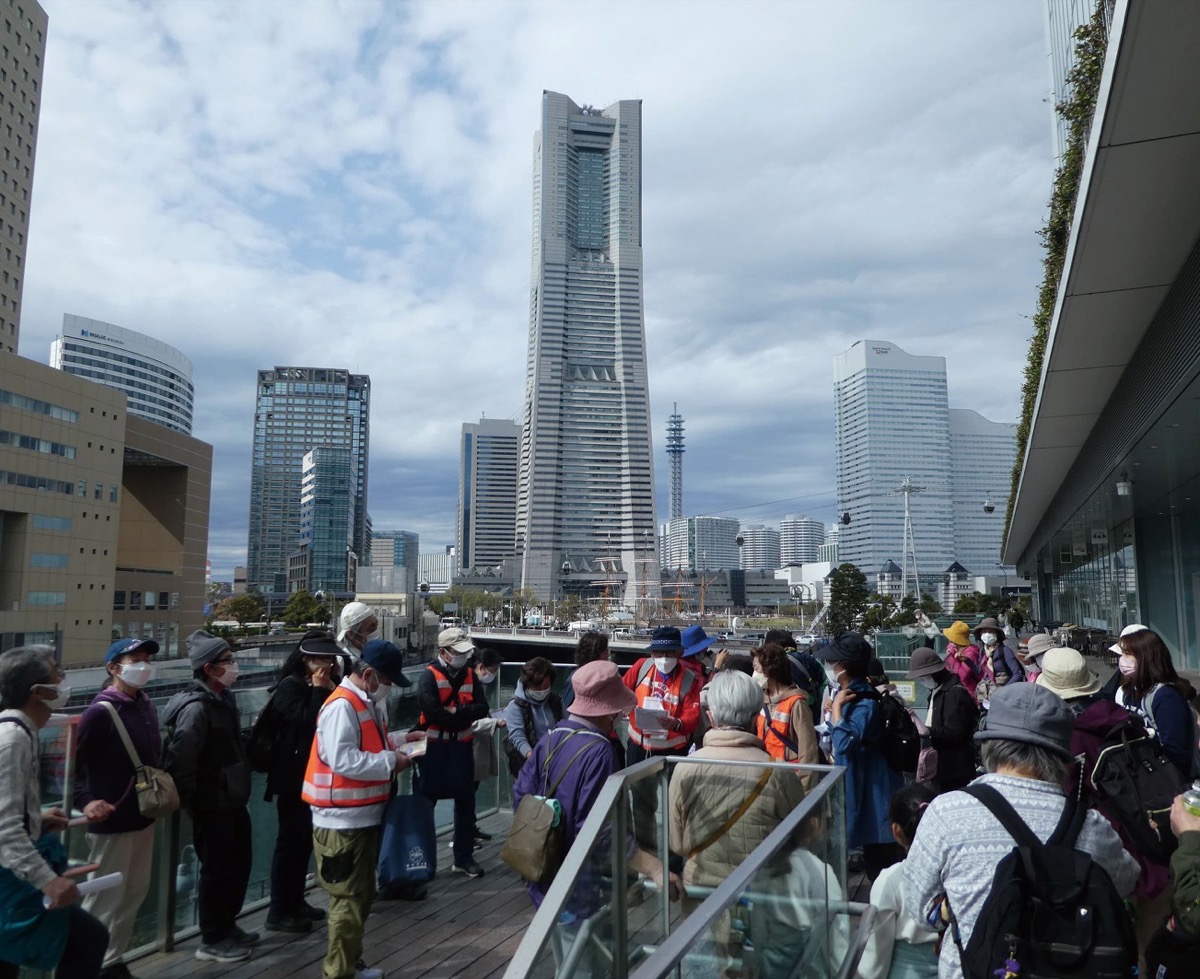 南小学校そばの与七橋を出発し、大岡川プロムナードを通りながら桜並木を歩いた。主催団体のメンバーが大岡川の桜がソメイヨシノからジンダイアケボノに植え替えられた理由などを説明。その後、お三の宮日枝神社など、吉田新田の干拓地域で歴史を学び、市庁舎で解散した。