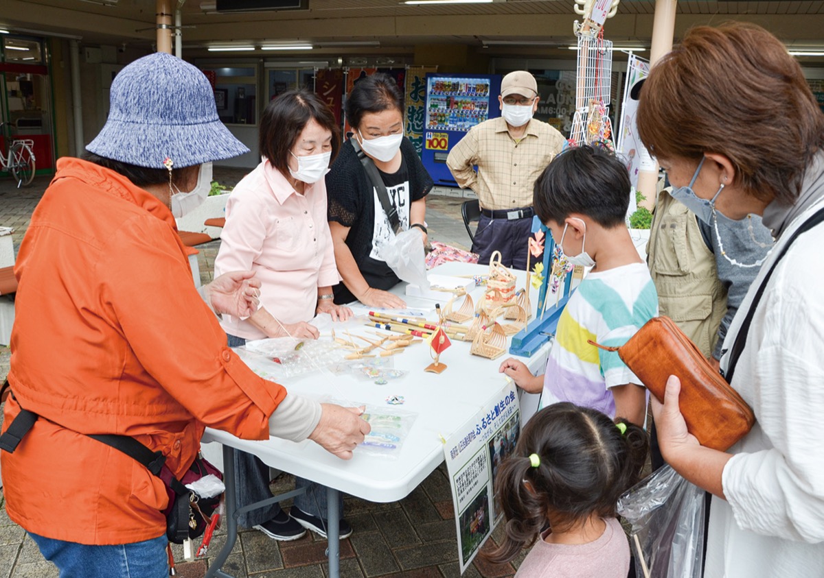 つながり祭では竹とんぼ、竹鉄砲、竹かごなど約100個を販売。高齢者からは「懐かしい」、子どもからは「初めて見た」といった声が出た。高齢者が竹遊具の使い方を子どもに教える様子も見られ、多世代交流の拠点となった。