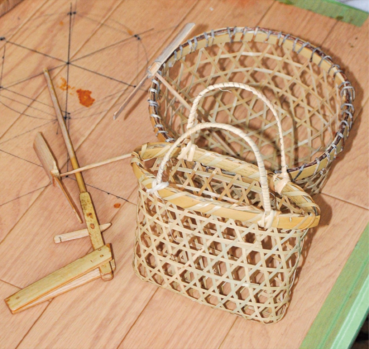 竹細工は地元の祭りなどで提供。作品の中には制作に1週間以上かかるものもあるが、100円から200円ほどの価格で販売している。