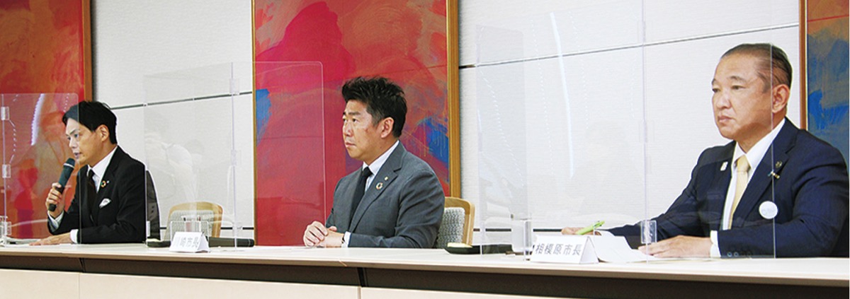 県と政令市の二重行政の解消や権限、財源の移譲などを目指す「特別市」構想に関し、法制化を訴える横浜、川崎、相模原の3政令市の市長が7月27日に共同で会見を開き、「二重行政を完全に解消するため、新しい仕組みとして特別市が必要」と訴えた。特別市の必要性を巡っては、県と3市の意見が対立しており、事前に県が示していた懸念に回答した形だ。