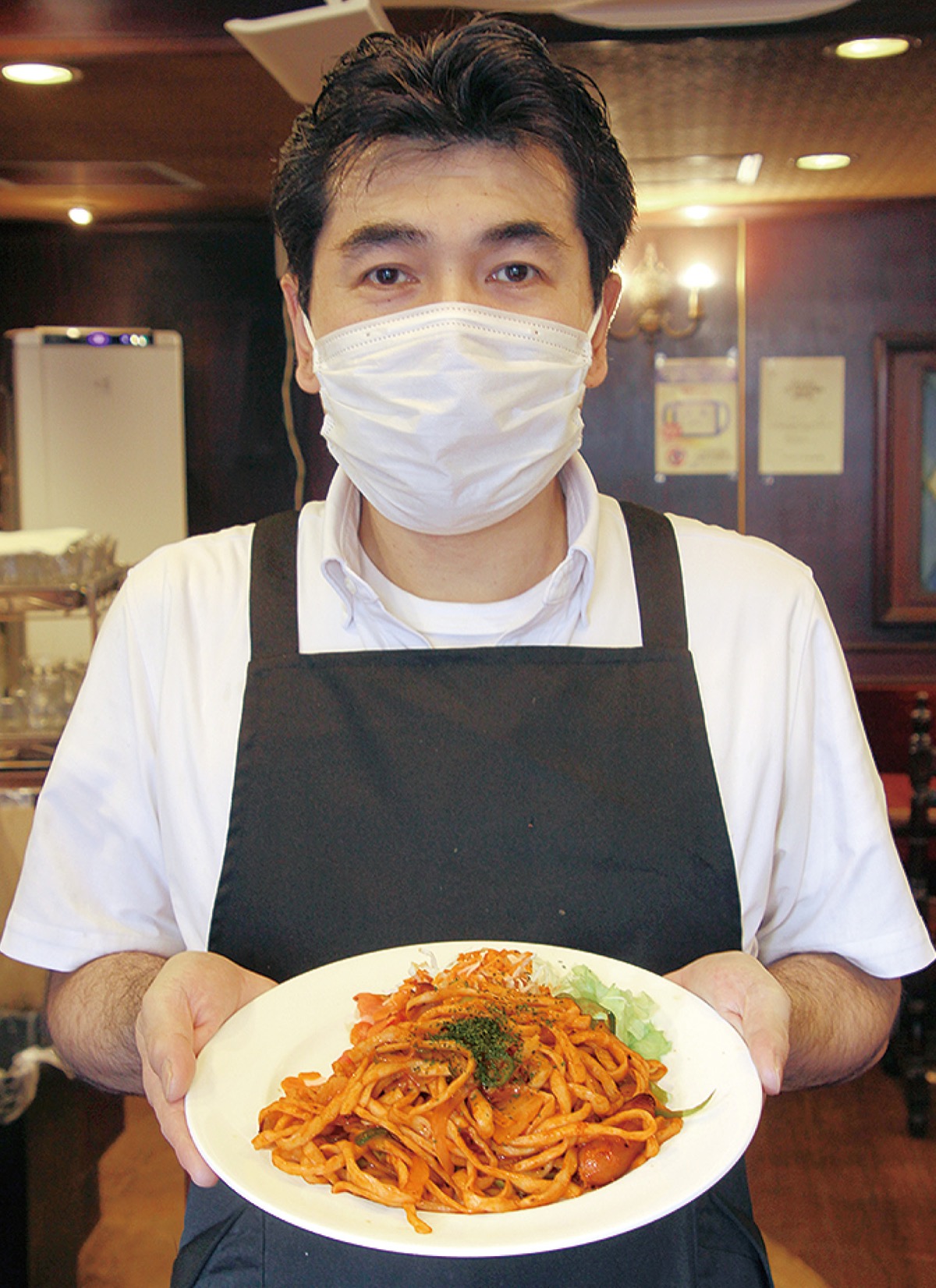 南太田駅前の喫茶店「ぱぁらー泉」がNHKの連続テレビ小説「ちむどんどん」にちなみ、沖縄そばを使ったナポリタンの提供を8月から始めた。観光関係団体主催の企画に参加したもので、同店を含む市内8店が沖縄関係のナポリタンを提供。同店は「いつもと違うナポリタンを味わって」と呼び掛ける。