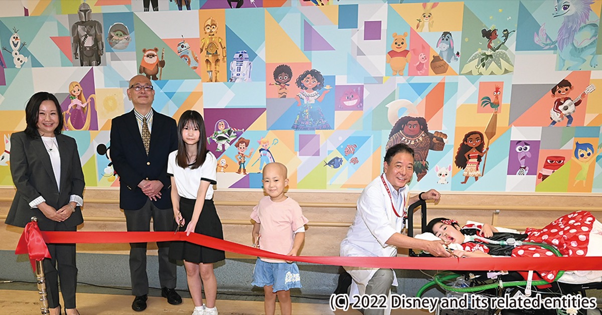 ディズニーキャラクターを施した高さ1・8m、幅6・5mほどのアートが同センターの外来待合室に登場。また、検査室やセンター内の重症心身障害児施設「ひだまり」のプレイルームなどに提供された。
