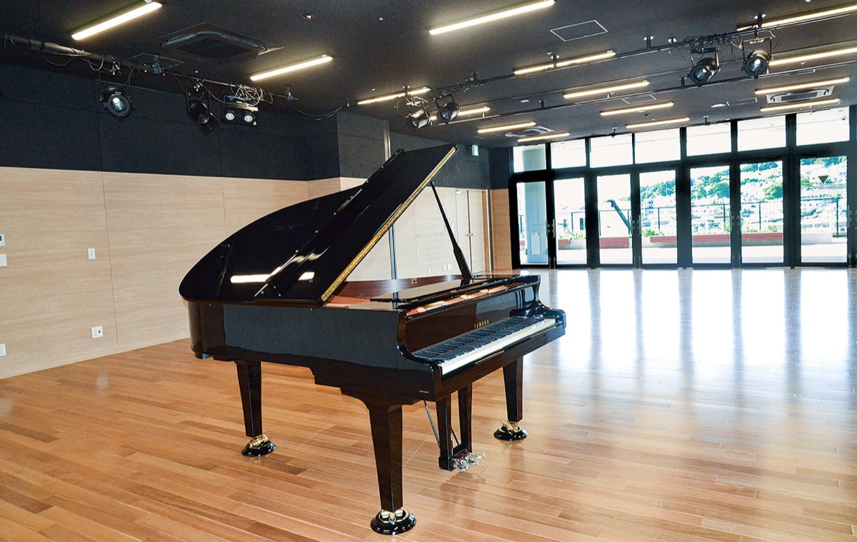 収容人数は130人、シアター形式だと最大110席、セミナーなどのスクール形式だと最大63席の容量。充実の照明や音響設備があり、地域の団体の音楽練習から発表会、コンサートまで多様な用途に対応できる。