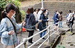 中村地区の道路に面した場所にソーラーライトを設置し、夜道を明るく照らす「点(とも)し火プロジェクト」によるライトの設置が10月25日、唐沢公園そばの狸坂で行われた。