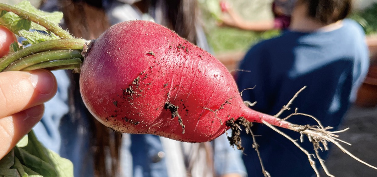 唐沢の園芸会社「横浜植木株式会社」が11月17日、永田台小学校で児童とともに育てたラディッシュを収穫した。