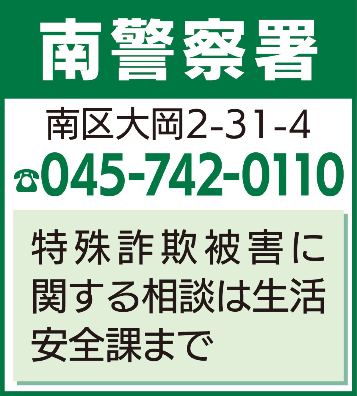 横浜市南区大岡2-31-4(南警察署内)