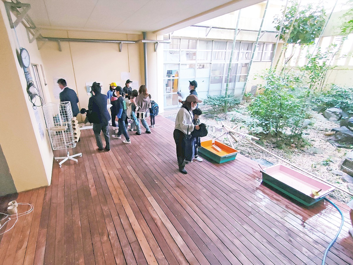担任の谷川知栄子教諭は「多くの協力を得たことで、児童はよりまちに愛着を持ち、視野が広がった」と話した。今後、テラスにライトなどを取り付ける工事が行われ、授業の中でも使えるようにしたいという。