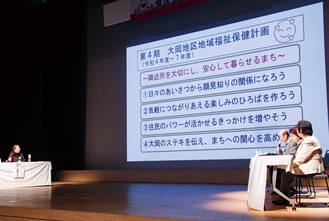 昨年から前里町四丁目町内会館で月1回、弁当配布を行う「こっこダイニング」は、補助金によって開催を知らせるチラシを多く配布でき、周知につながったことなどを発表した。スタッフの大木ほずみさんは「今後は会館の中で食事ができるようにしたい」と展望を語った。