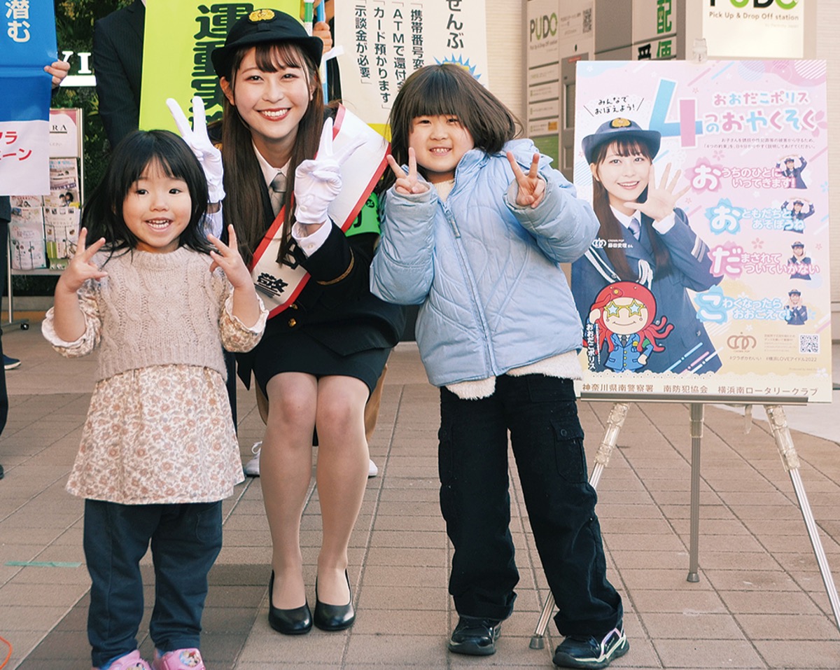 神奈川県出身の藤田さんは県警から「防犯大使」に任命されており、これまでに横浜中華街で行われた防犯パトロールに参加するなどしてきた。県警が推奨する子どものための防犯標語「おおだこポリス4つのおやくそく」をもとに、南署が独自に作ったポスターのモデルに起用されている。