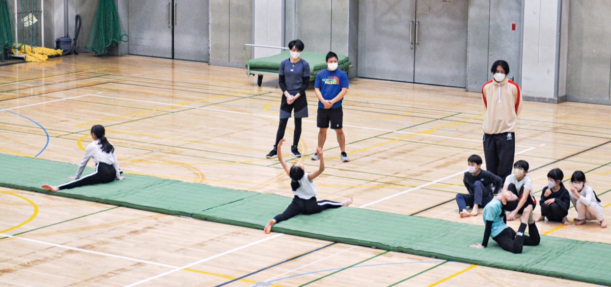 今回は9団体が発表。1964年の東京五輪メダリストで、南区体操協会副会長の加藤宏子さんが主宰する体操教室の生徒が自宅でできるストレッチを見せた。昨年8月の「フラガールズ甲子園」で優勝した関東学院中高ダンス部がフラダンス、清水ケ丘公園体育館などで活動するスポーツクラブ「カンガルークラブ」の子どもがマット運動を披露するなど、多世代の活躍が目立った。
